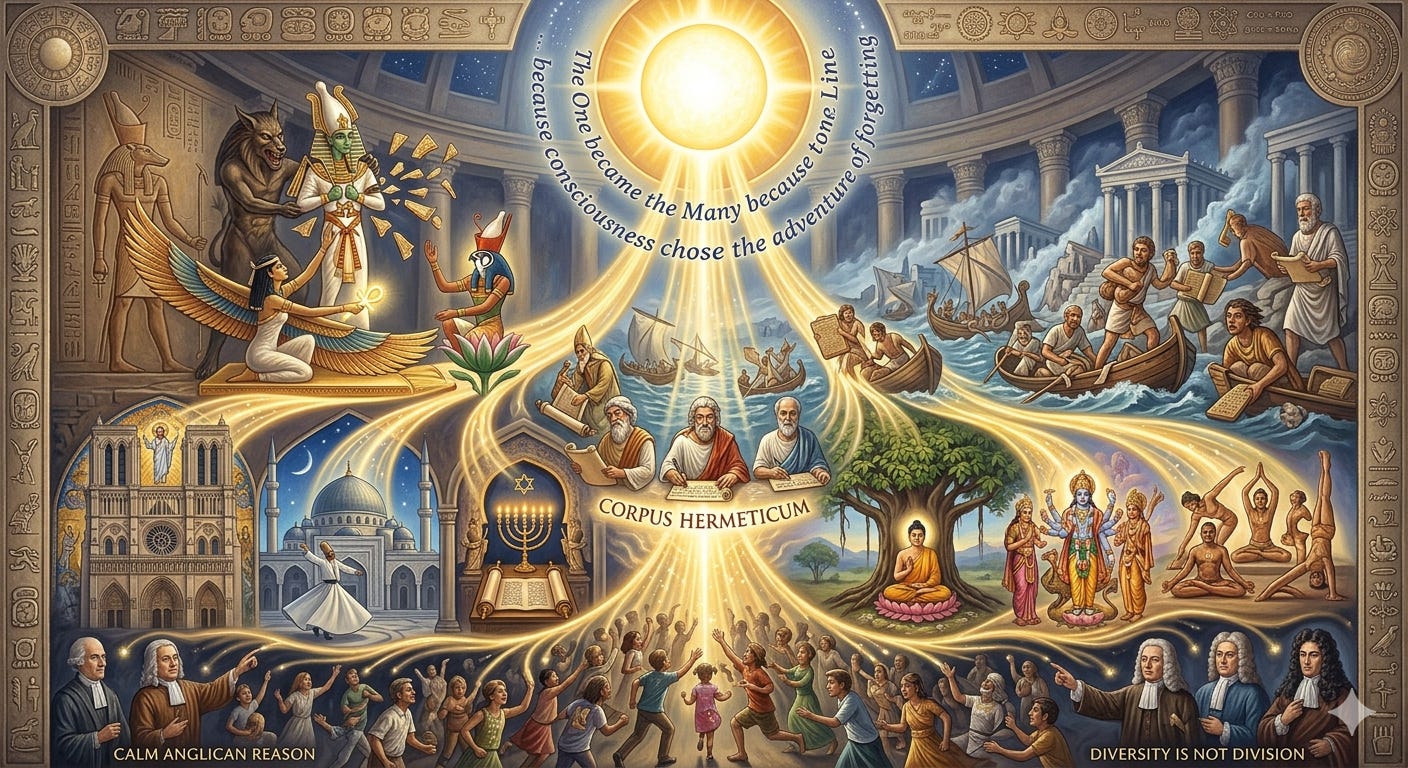 James Logan saw it in the Duties of Man. Leibniz defended it in the New Essay’s of Human Understanding. Joseph Butler proved it with calm Anglican reason in his Analogy of Religion. The perennial philosophy has always known: diversity is not division; it is the Creator’s way of letting the One play hide-and-seek with itself.